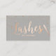 Lashes Makeup Artist Rose Gold Script Elegant Gray Business Cards.