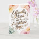 Feiern Sie einen wohlverdienten Ruhestand mit dieser eleganten Aquarell-Grußkarte mit dem handgeschriebenen Zitat „Offiziell im Ruhestand – Lass das Abenteuer beginnen.“
