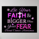Inspiration für Brustkrebs Zitat von "Lass Dein GLAUBEN sei GRÖSSER als Deine ANGST" und "Brustkrebs-Bewusstsein" für Brustkrebstote Überlebende und Kämpfer, die an Gott glauben.