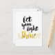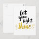 Moderner Brush-Kalligraphie-Stil mit Worten: "Lass deinen leichten Shine" (basierend auf Matthew 5:16), im Goldstil-Effekt. Das Wort "gline" hat helle Röntgenbilder, die sich auf beiden Seiten erstrecken.