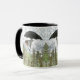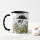Inspiriert von Langston Hughes Gedicht, April Rain Song, bietet diese Tasse einen schwarz-schwarzen Marmeladen unter einem Regenschirm im Frühling.