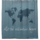 Lass dem Abenteuer Textdesign mit World Map Dekoration auf grunge, blauem Hintergrund