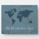 Lass dem Abenteuer Textdesign mit World Map Dekoration auf grunge, blauem Hintergrund
