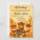 Diese charmante Cowboy Baby Shower Invitation zeigt Ihre Waldtiere in Cowboyhütten, Bandanas und Stiefeln vor einem warmen Wüstenhintergrund im texanischen Stil. Ideal für eine Cowboy Baby Dusche Einladung feiern einen kleinen Jungen, es erinnert an Abenteuer und rustikale Freude. Einfach zu personalisieren und ideal für ein Western Baby Shower Thema.
