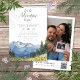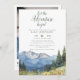 Dieses moderne, elegante, lassend das Abenteuer beginnen Wasserfarbe Berg Wildblume Babydusche Einladung kann mit Ihren Informationen in der modernen Typografie personalisiert werden und ein spezielles Foto auf der Rückseite zusammen mit einer Registrierung QR-Code. Entwickelt von Thisisnotme©