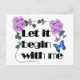 Lass es beginnt mit mir Sprichwort Blume Schmetter Postkarte
