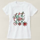 Dies ist ein lustiger Weihnachtsfest-T - Shirt mit der Phrase "Lass es schneien" und drei Schneeflocken in einem karierten Muster.