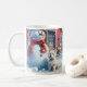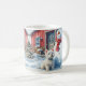 Der charmante Snowman und seine Westie mit einer roten Scheune an einem schneebedeckten Tag; diese schneebedeckte Tasse wird die kalten Tage deutlich wärmer machen. Dies ist eine Tasse, die Sie vom ersten bis zum letzten Schnee benutzen werden. Spülmaschinen und Mikrowellen geeignet.