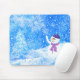 "Let it Snow!" - Wunderschönes Wintermousepad mit blauer Schneelandschaft, gemalt mit Acrylfarbe, niedlichem Schneemann und Schneeflocken, alle auf verschiedenen Ebenen, sodass Sie sie leicht verändern oder (wieder)verschieben können.