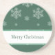 Whimsical und fun Let it Snow Holiday Untersetzer in dunkelgrün mit einer Kaskade von Hand gezeichnete Schneeflocken. Dieser Untersetzer aus Sandstein eignet sich hervorragend, um jedem Dekor saisonalen Flair zu verleihen und gleichzeitig Ihre Möbel zu schützen. Einfach zu anpassen, fügen Sie einfach den personalisierten Text Ihrer Wahl.