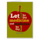 "Lass Essen sei deine Medizin, und Medizin sei dein Essen" ist ein berühmtes historisches Zitat von Hippokrates (460 v. Chr. - c. 370 v. Chr.), der ein alter griechischer Arzt war. Auf diesem Produkt mit Typografie in verschiedenen Tönen grün, weiß und gelb präsentiert. Der Text ist Set auf einem Bild von einem natürlichen Superfood, einem saftigen roten Apfel.