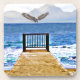 Kunstmalerei eines Ozeans mit Bergen und Segelbooten mit und Adler fliegen vorbei. Ein Spazierweg, auf dem man Uhr stehen kann, träumen möchte und Sorgen lasse.