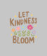 Eine fröhliche digitale Illustration mit farbenfrohen Blume, die unter der aufhetzenden Botschaft "Kindness Bloom Lass" wachsen. Der Text ist in einer warmen braunen Farbe, umgeben von kleinen funkelnden Akzenten, die das Thema Positivität und Freundlichkeit verstärken. Dieses Design fördert Mitgefühl, Wachstum und die Verbreitung von Güte.