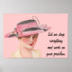 Dieses Poster zeigt ein Vintage-Bild einer Frau in einem eleganten rosa Hut, auf einem individuell anpassbaren rosa Hintergrund. Der Text "Lass mir alles lassen und an Ihrem Problem arbeiten", kann ebenfalls angepasst werden.