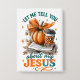 Friedliches, farbenfrohes Design mit Herbst/Herbst-Szene mit einem offenen Buch, Kürbis und Kaffee. Der farbenfrohe inspirierende Text lautet: "Lass mir, dir von meinem Jesus zu erzählen". Dieses Design ist auf einer Vielzahl von Produkten erhältlich.