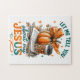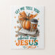 Friedliches, farbenfrohes Design mit Herbst/Herbst-Szene mit einem offenen Buch, Kürbis und Kaffee. Der farbenfrohe inspirierende Text lautet: "Lass mir, dir von meinem Jesus zu erzählen". Dieses Design ist auf einer Vielzahl von Produkten erhältlich.