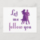 Für die Ambiance. Manchmal verpasst man einen guten Tanz, weil man nicht wusste, fragen. Lass nicht, dass es wieder passiert! Dieses "Lass Me Follow You"-Design garantiert jedem, der weiß, dass er bereit ist zu folgen. Sorgfältige Typografie und originale Vektorkunst heben dieses Design hervor. Erhältlich mit "bluesing" Silhouette und "swinging" Silhouette. Anpassen der Hintergrundfarbe: Ich habe eine Option, die besser auf hellen Farben druckt und eine, die besser auf dunkel druckt. Achten Sie darauf, das richtige auszuwählen.