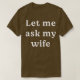 Lass mir meine Ehefrau fragen. Funny, Family, Sports, Music, Bildung, Animals, Jobs, Namen, Grafik, T-Shirts Shirt, Lustige Sprüche, Vintag, Feiertage, Geschenke, Party, Souvenir, Stolz, Ferien, Kleidung Kleidung für Vatertag, Weihnachten, Geburtstag, Muttertag, Jubiläum, Abschluss, zwischen, 4 Juli, Pension, St. Patrick's Day, Erntedank.