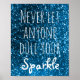 Das inspirierende Zitat-Poster mit einem dunkelblauen Glitzer-Look Hintergrund und dem Text 'Niemals Lass jemandem Dull Your Sparkle' in weißen, skurrilen, trendigen Buchstaben. Die Jugendherberge ist ein ideales Geschenk für Teenager, und der Glitzer in mädchenhaftem Blau ist für Teenager ideal. Auch ihr niedliches, inspirierendes Abschluss-Geschenk.