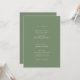 Dieses Design bietet eine minimalistische und elegante Dusche für Paare. Es hat einen schlauen grünen Hintergrund mit weißer Typografie, die klassische Serifenschrift und moderne Kalligraphie für die Betonung kombiniert. Die Gestaltung ist gepflegt und elegant, elegant und elegant zugleich, um die Namen und Veranstaltungsdetails der Paare auf raffinierte und stilvolle Weise hervorzuheben. Das Gesamtdesign fühlt sich zeitlos, anmutig und leicht lesbar an und eignet sich somit perfekt für ein klassisches Fest.