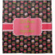 Niedliche, rosa und limig grüne Kuchen auf einem schwarzen Duschvorhang. Im Text steht: "Lass ihnen Kuchen zu essen."