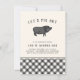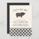 Hosten Sie diesen Sommer eine GRILLEN oder Schweinegrippe in Ihrem Haus? Mit unseren skurrilen und niedlichen Party Einladungen mit einer Vintagen Hog-Illustration und "Let's swimming out", die in schwarzer Schrift über die Spitze geschraubt sind, laden wir Sie ein, sich mit Ihnen auszukochen. Fügen Sie unter Verwendung der bereitgestellten Vorlagenfelder Ihre Ereignisdetails hinzu. Eine karierte untere Grenze fügt eine rustikale Touch hinzu.
