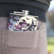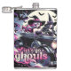 "Let's Go Ghouls" - Ein stilvolles, Retro-inspiriertes Halloween-Design mit zwei glamourösen Hexenfiguren in einem Oldtimer. Set vor einer dramatischen nächtlichen Kulisse mit Vollmond, einer Spuk Burg und fliegenden Fledermäusen. Ideal für Ihre Hexengenossen.