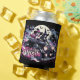 "Let's Go Ghouls" - Ein stilvolles, Retro-inspiriertes Halloween-Design mit zwei glamourösen Hexenfiguren in einem Oldtimer. Set vor einer dramatischen nächtlichen Kulisse mit Vollmond, einer Spuk Burg und fliegenden Fledermäusen. Ideal für Ihre Hexengenossen.