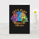 Vintages Brettspiel-Design mit farbenfrohen Kostümen und dem Zitat "Lass uns Dungeons & Meeples spielen". Gutes Geschenk für alle, die Lieben Brettspiele und Fantasie spielen.