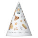 Niedlicher Kindergeburtstag Party Hut, mit dem Text 'Let's Make some Noise It's (ADD NAME & AGE) Geburtstag!', Aquarell afrikanische Gesänge und tanzende Tiere (Zebra, Hippo und Giraffe) spielen Musikinstrumente. Der Text ist vollständig anpassbar, fügen Sie einfach Ihren Kinder Namen und Alter hinzu.