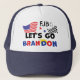 Der populäre politische Slogan "Let's Go Brandon" und FJB mit der amerikanischen Flagge und einer Autorennflagge und eine einzigartige Illustration des blühenden Haars von Donald Trump.