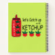 Lasse Catch Up mit Ketchup-Notebook von Nisha Prabhu entworfen. Niedliche rote Tomaten und Ketschup-Illustration mit lustiger Typografie. Mit diesem "Let's Catch Up With Ketchup"-Notizbuch können Sie Ihren Notizzettel etwas Geschmack hinzufügen! Dieses spielerische Notebook ist perfekt für Ideenreichtum, doodlen oder behaltend Gedanken. Es ist ein Muss für Ketschup-Liebhaber und Feinschmecker gleichermaßen. Mit einem lustigen und farbenfrohen Design, das Sie jedes Mal lächeln lässt, wenn Sie es benutzen, ist dieses Notizbuch so praktisch wie reizvoll. Leckerei dich an diesem einzigartigen und charmanten Notizbuch und würze deine Briefmarkensammlung!