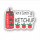 Lasse mit Ketchup Fast Food Restaurant Sticker von Nisha Prabhu gestaltet aufzuholen. Niedliche rote Tomaten und Ketschup-Illustration mit lustiger Typografie. Fügen Sie Ihrem Fast-Food-Restaurant eine Touch Geschmack mit diesem Aufkleber 'Let's Catch Up with Ketchup' hinzu! Dieser Aufkleber ist perfekt geeignet, um dem Branding Ihres Hauses ein spielerisches und ungewöhnliches Element hinzuzufügen. Das Design ist im Ketschup-Stil gehalten und begeistert Kunden aller Altersgruppen. Egal, ob Sie einen Pop Persönlichkeit in Ihren Raum einbauen oder einfach gewollt werden möchten, Ihre Liebe für die Zubereitung von Speisen zu präsentieren, dieser Aufkleber "Let's Catch Up with Ketchup" ist eine lustige und kreative Art, die Dekoration Ihres Restaurants zu würzen. Lassen Sie sich von der Konkurrenz abheben und machen Sie mit diesem auffälligen Aufkleber einen unvergesslichen Eindruck!