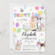 Diese individuell gestaltbare Einladungs-Card ist für unsere Erstgeburtskollektion konzipiert und verfügt über Ballons, Hunde, farbenfrohe Dekorationen und dekorative Schriftart. Matching-Elemente verfügbar.