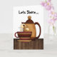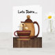 Dies ist die perfekte Karte, um die Diskussion über das Teilen zu eröffnen. Zwei Frauen sitzen an einem Tisch und trinken Kaffee, und oben auf der Karte steht "lasse teilen"