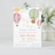 Lasse sie fliegen! Ein Baby ist unterwegs! Diese niedliche Rosa-, Blau- und Goldluftballon-Themeneinladung ist perfekt für Ihre Babydusche oder Ihr Sprinkle.