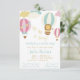 Lasse sie fliegen! Ein kleiner Junge ist unterwegs! Diese niedliche Rosa-, Blau- und Goldluftballon-Themeneinladung ist perfekt für Ihre Babydusche oder Ihr Sprinkle.