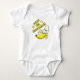 Adorable ein Stück Anzug für Babys, mit einem niedlichen Cartoon, kawaii Happy Gelb Banane mit dem süßesten Lächeln, große runde Augen und halb geschält. Oben in gelber Schrift mit einem schwarzen Schlagschatten, der "Lasse Go Bananen!" liest! Zwei hellgelbe Sterne sind beide Seiten der Worte.