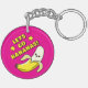 Adorable Schlüsselanhänger mit einem niedlichen Cartoon, kawaii fröhliche gelbe Banane mit dem süßesten Lächeln, große runde Augen und halb geschält. Oben in gelber Schrift mit einem schwarzen Schlagschatten, der "Lasse Go Bananen!" liest! Zwei hellgelbe Sterne sind beide Seiten der Worte.