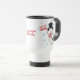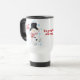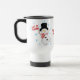Es handelt sich um eine witzige Tasse mit einem Schneemann, der im Schnee tanzt und einen Hut und Schal trägt, mit den Worten "Lass es schneien". Der Text auf der Vorderseite des Reisebogens ist individuell anpassbar oder kann links werden, wie er ist.