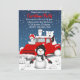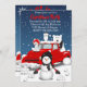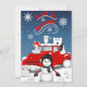 Dieses Design zeigt die Nostalgie eines Vintagen roten Lastwagens mit einigen arktischen Tieren und einem Schneemann in einer winterlichen Szene.