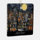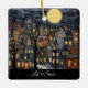 Vintage Abbildung einer Stadt mit malerischen Gebäude in der Nacht mit LET IT SNOW Text. Bild für den öffentlichen Bereich.