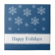 Whimsical und fun Let it Snow Holiday Tile in königsblau mit einer Kaskade von Hand gezogenen Schneeflocken. Diese lustige Zierkachel würde ein wunderbares Urlaubsgeschenk machen. Einfach zu anpassen, fügen Sie einfach den personalisierten Text Ihrer Wahl.