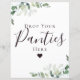 Zeigen Sie Ihren Gästen, wo sie ihre Geschenke für das Brautparty Panty-Spiel mit diesem Drop Your Panties Hier Zeichen verlassen.