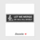 Machen Sie eine kühne Aussage auf der Straße mit unserem urkomischen und geilen Stoßfänger-Aufkleber: "LASS MICH MERGE, ODER ICH WERDE MICH SELBST töten." Ideal für diejenigen, die einen dunklen Sinn für Humor lieben und einen Hauch Comedy zu ihrem täglichen Pendelverkehr hinzufügen möchten.