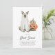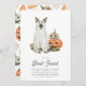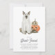 Gastgeber eines Erwachsenen nur Halloween Bash? Freuen Sie sich auf die charmanten und lustigen Einladungen mit einem Hund, der eine Geisterkostüme trägt, flankiert von Jack-o-Laternen-Kürbissen in Aquarellen. Darunter erscheint neben den Halloween-Party-Details "Let's get sheet-face".