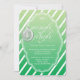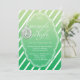 Eine hübsche Einladung, die sich perfekt für ein Party im Winter eignet. Diese Einladung hat einen dunkelgrünen bis hellgrünen Farbverlauf mit weißen diagonalen Streifen. Zentriert ist ein großer weißer Rahmen für Ihren Text. Oben in Weiß steht hier "Let's Mingle and Jingle" mit einem hübschen Ornament zu den links. Die Erholung Ihres Aufforderungswortes geht unten in Weiß. Diese Einladung wäre perfekt für Ihre Business-Feier.
