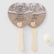 Hochzeitsfans am Strand, mit einem Foto von Wasser, das auf einem Sandstrand abgespült wird, und einer Muschel am Single. Personalisieren Sie den Text für Ihren Hochzeitstag. Matching Produkte sind erhältlich.