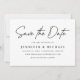 Einfache Save the Date Karte mit "Save the Date" in einem schwarzen handgeschriebenen Skript mit weißem Hintergrund. Personalisieren Sie die moderne Save the Date-Karte, indem Sie Ihre Namen, das Hochzeitsdatum, den Hochzeitsort, die Hochzeitswebsite, etc. hinzufügen. Die minimalistisch Save the Date Karte kehrt um, um einen soliden schwarzen Hintergrund mit Platz für zusätzlichen Text und Fotos anzuzeigen.