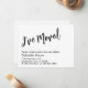 In diesem einfachen Design wurde der Header - "I've Moved" - in einem modernen Schriftart mit Schriftzeichen dargestellt. Der gleiche Schriftart wurde für "Bleibe in Touch! auf der Rückseite verwendet. Andere Details erscheinen in einem hübschen serifenlosen Schriftart. Alle Texte, Farben, Schriftart und Layouts können nach Belieben geändert werden.
